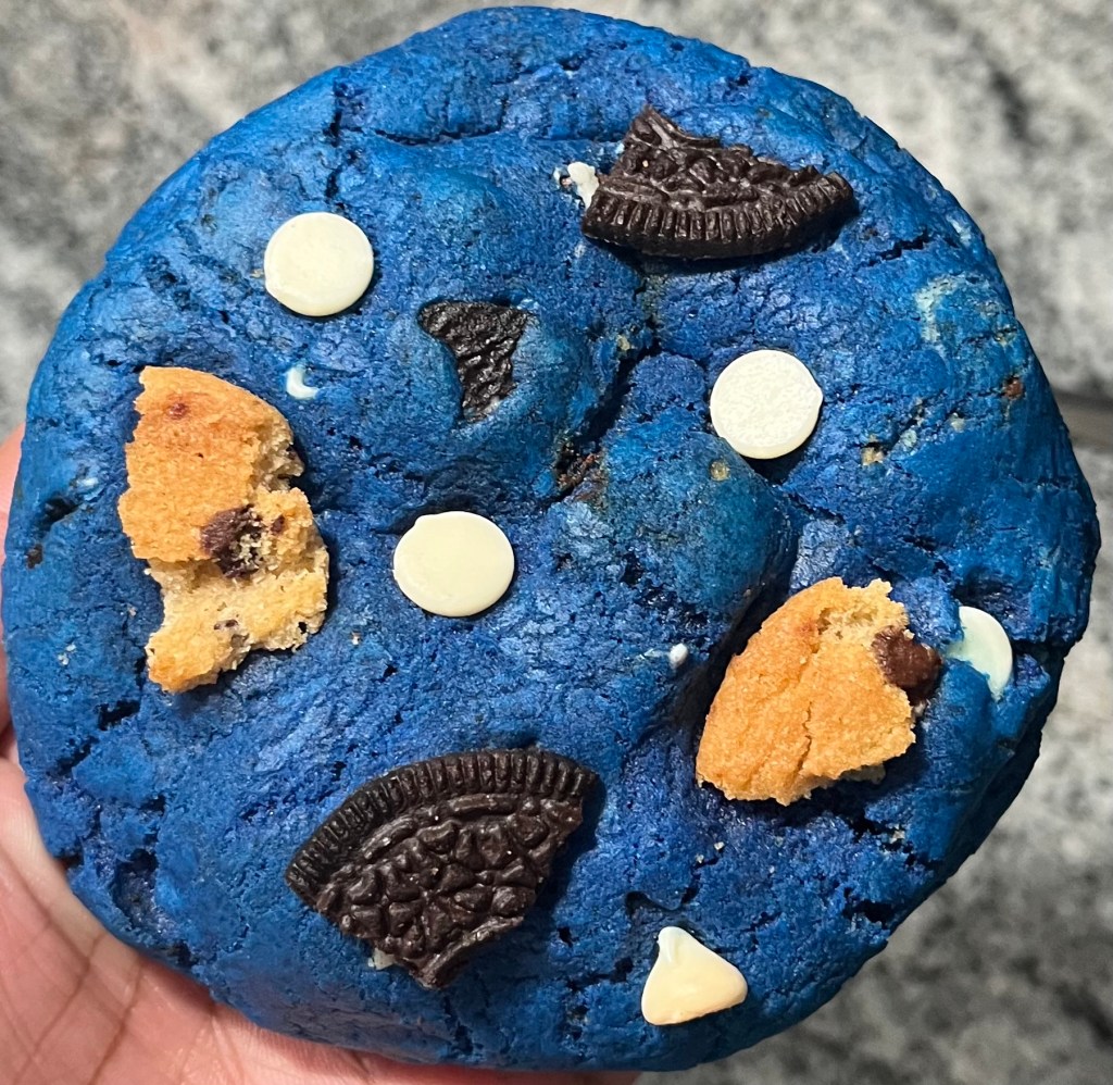 Unleash your inner cookie lover with bold Cookie Monster Cookies, featuring Oreo’s, Chips Ahoy, chocolate chips, and white chocolate chips. Each cookie has a soft, gooey marshmallow center for added sweetness. Baked to perfection and dyed blue, these playful treats are perfect for anyone who loves cookies.