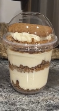 Layers of smooth cheesecake filling and spiced cookie crumbs, finished with a creamy cheesecake topping. Warm, lightly spiced, and full of cozy cookie flavor in every bite.