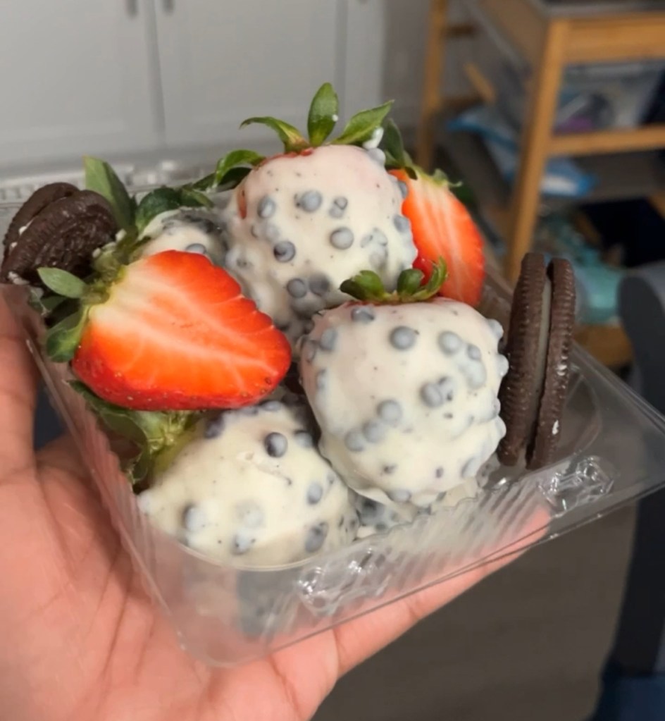 Fresh strawberries dipped in smooth cookies-and-cream coating and finished with chocolate cookie pieces. Juicy, creamy, and perfectly balanced with every bite.