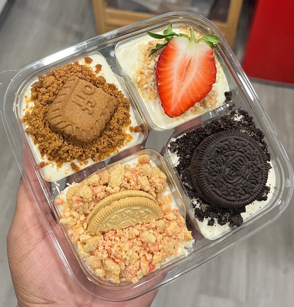 Four rich cheesecake-filled cups in one box, featuring a variety of flavors so you don’t have to choose just one. Creamy, smooth, and loaded with toppings in every bite.