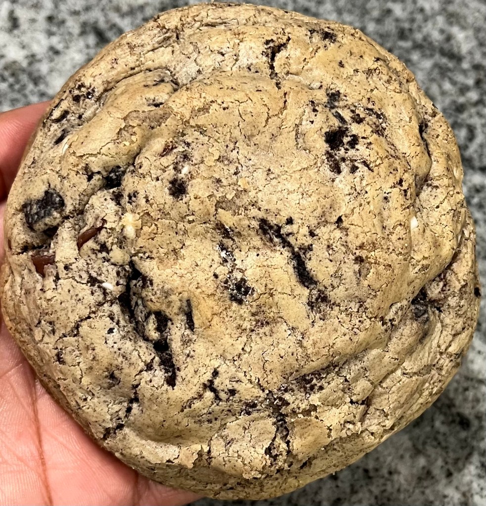 A thick, bakery-style cookie loaded with crushed Oreo pieces and creamy white chocolate throughout. Soft in the center with rich cookies-and-cream flavor in every bite.