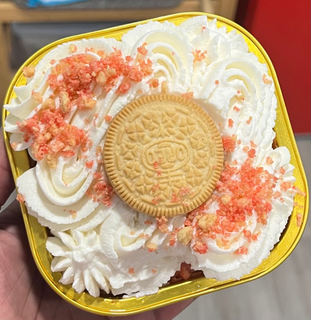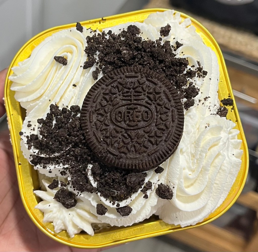 A soft vanilla milk-soaked cake layered with smooth whipped cream and topped with crushed Oreo’s and a full Oreo cookie. Creamy, rich, and packed with cookies-and-cream flavor in every bite.